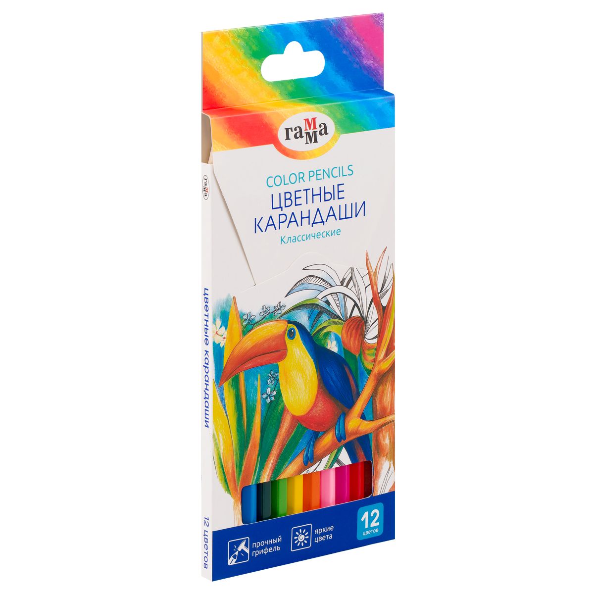 Карандаши цветные Гамма "Классические", 12цв., заточен., картон. упак., европодвес