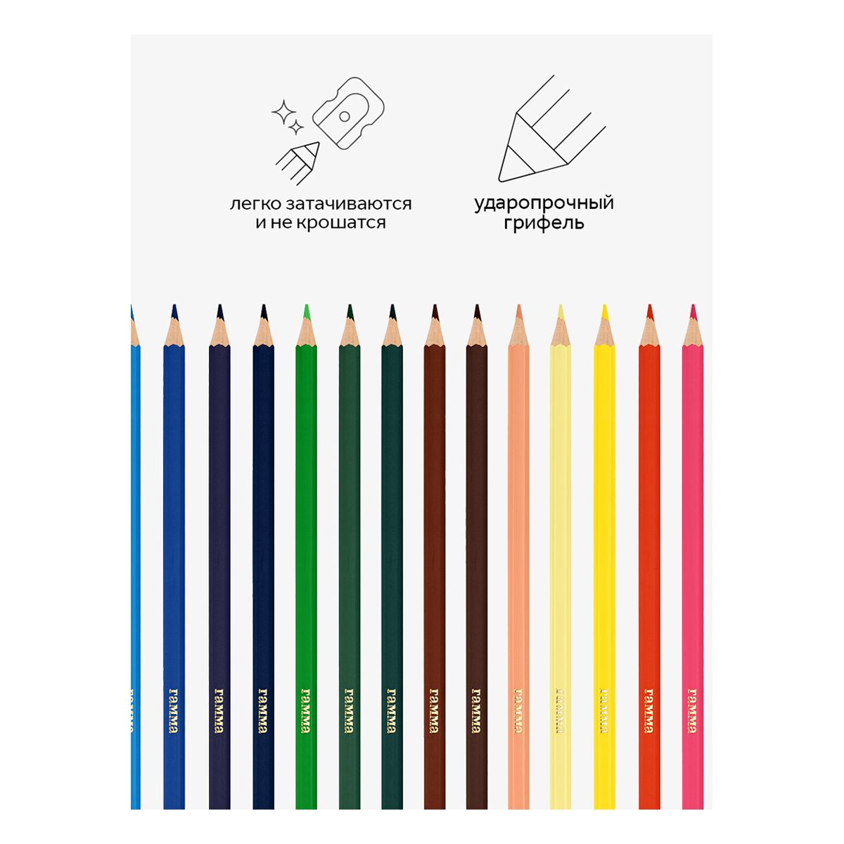 Карандаши цветные Гамма "Классические", 18цв., заточен., картон. упаковка, европодвес