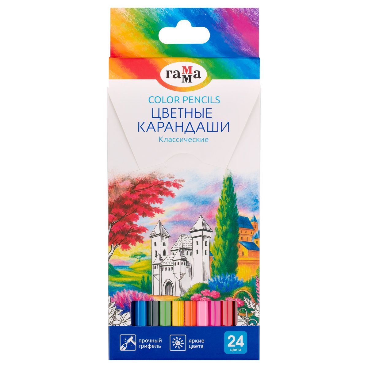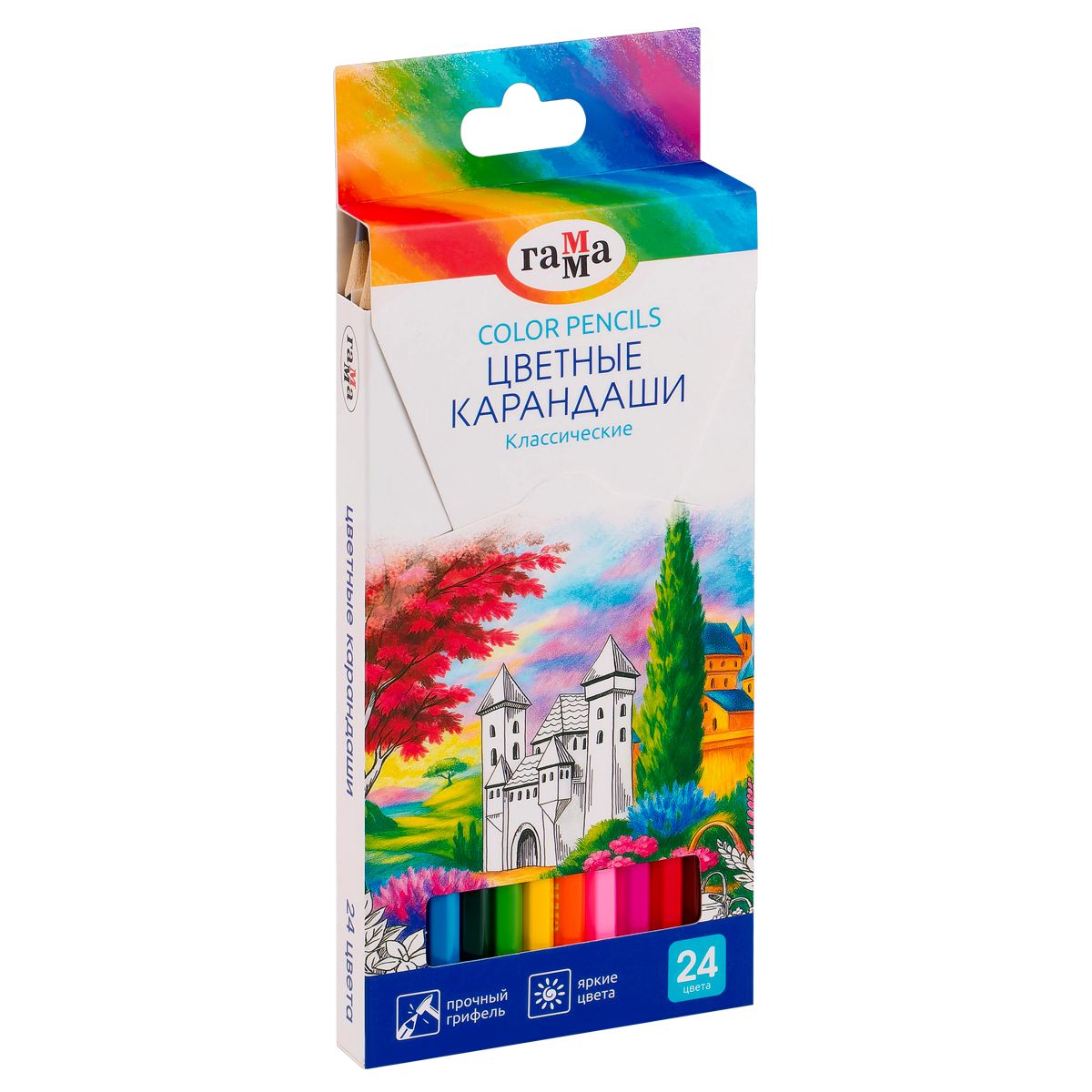Карандаши цветные Гамма "Классические", 24цв., заточен., картон. упак., европодвес