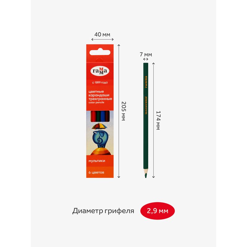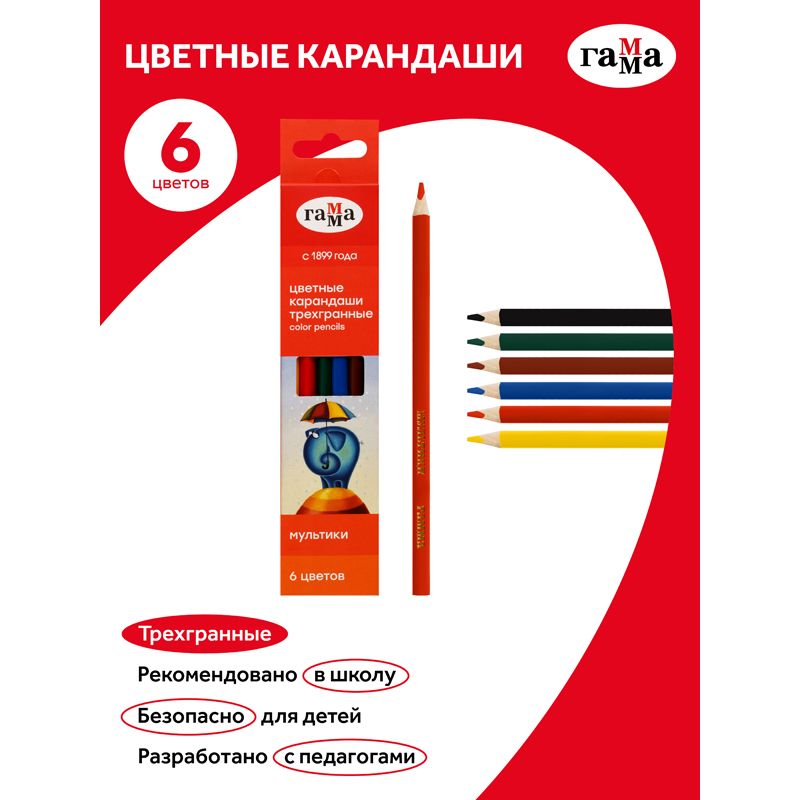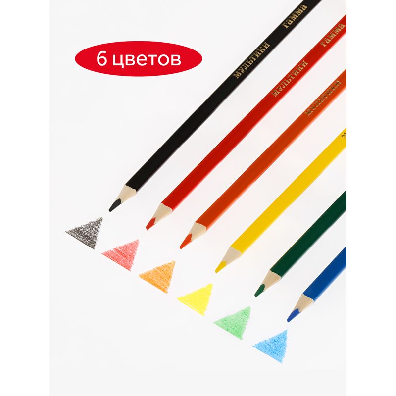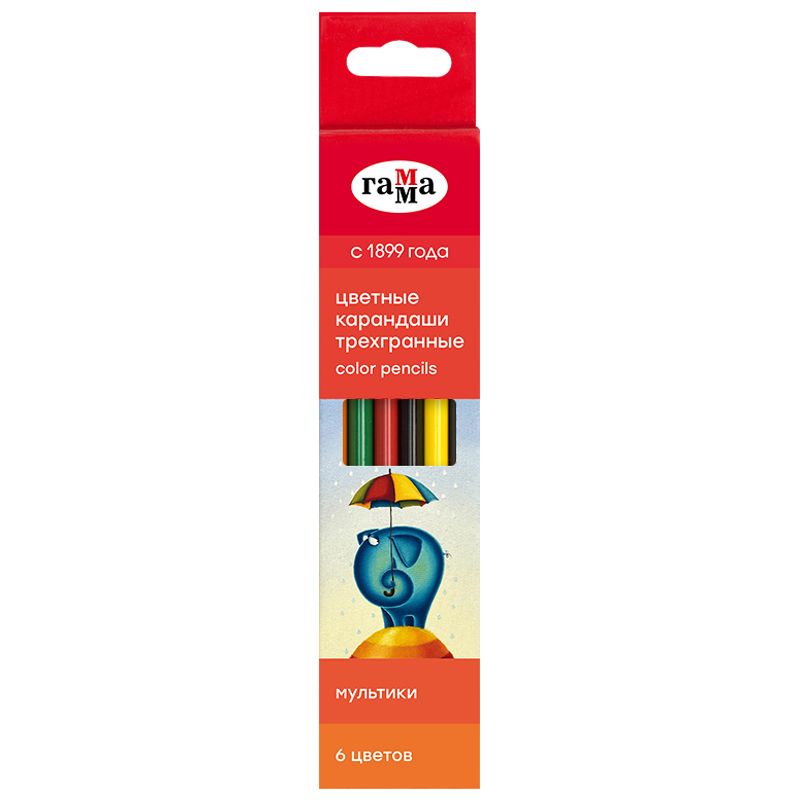 Карандаши цветные Гамма "Мультики", 06цв., трехгранные, заточен., картон. упак., европодвес