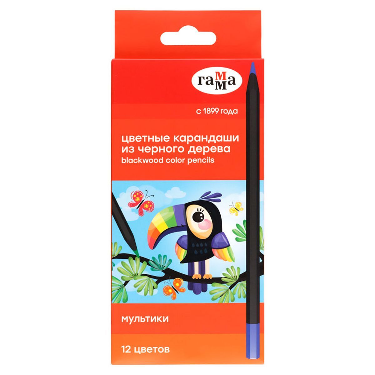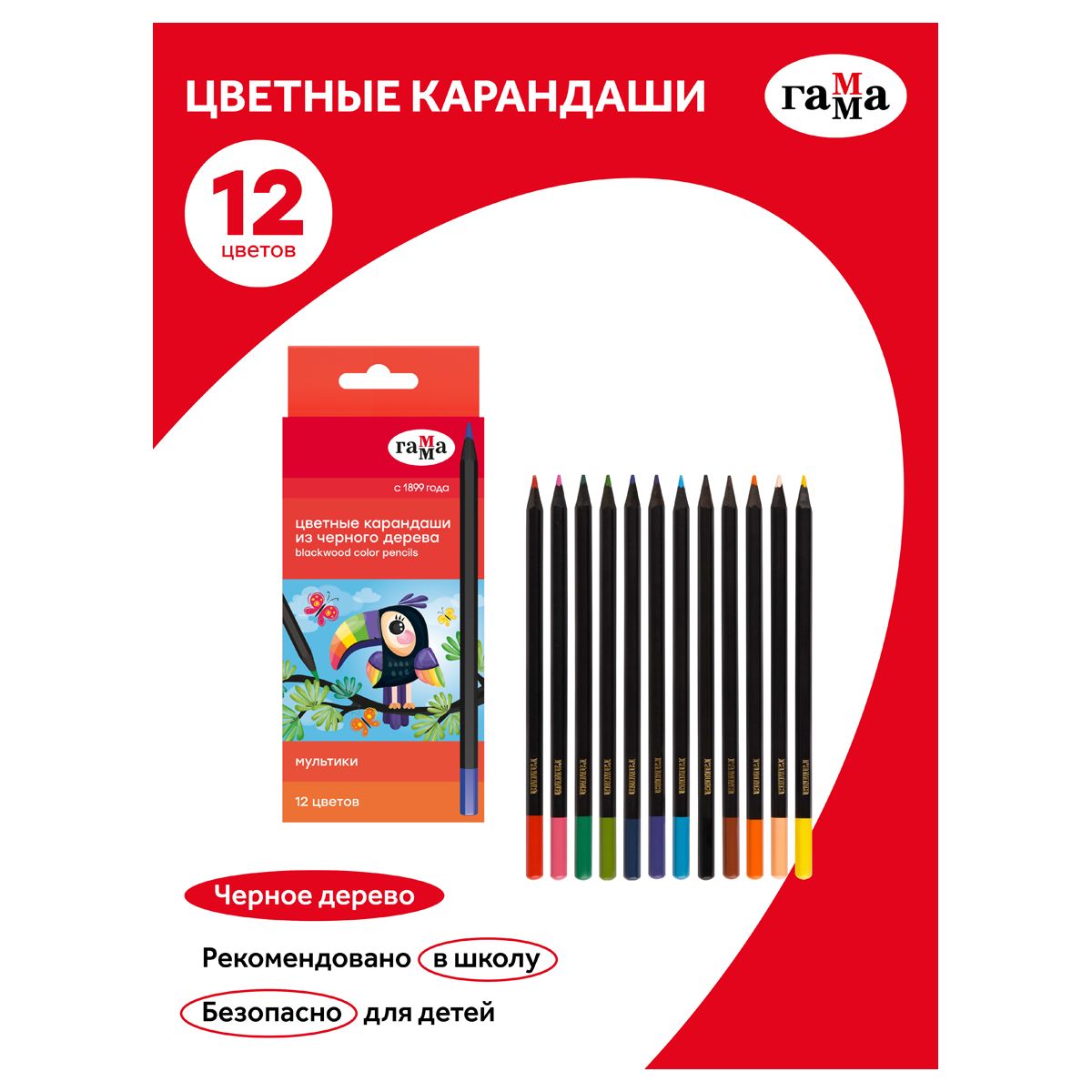 Карандаши цветные Гамма "Мультики", 12цв., черное дерево,заточен., картон. упак., европодвес