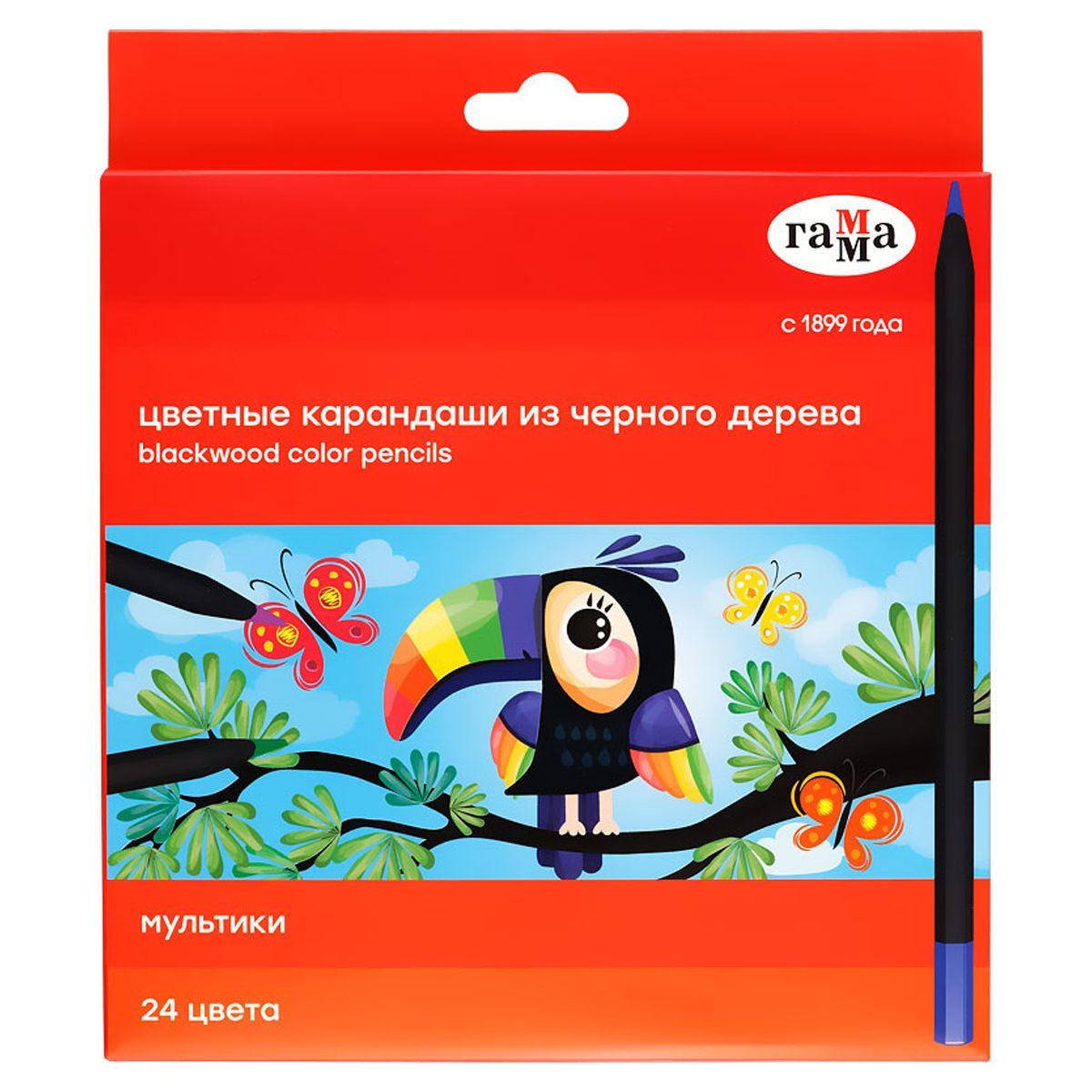 Карандаши цветные Гамма "Мультики", 24цв., черное дерево,заточен., картон. упак., европодвес