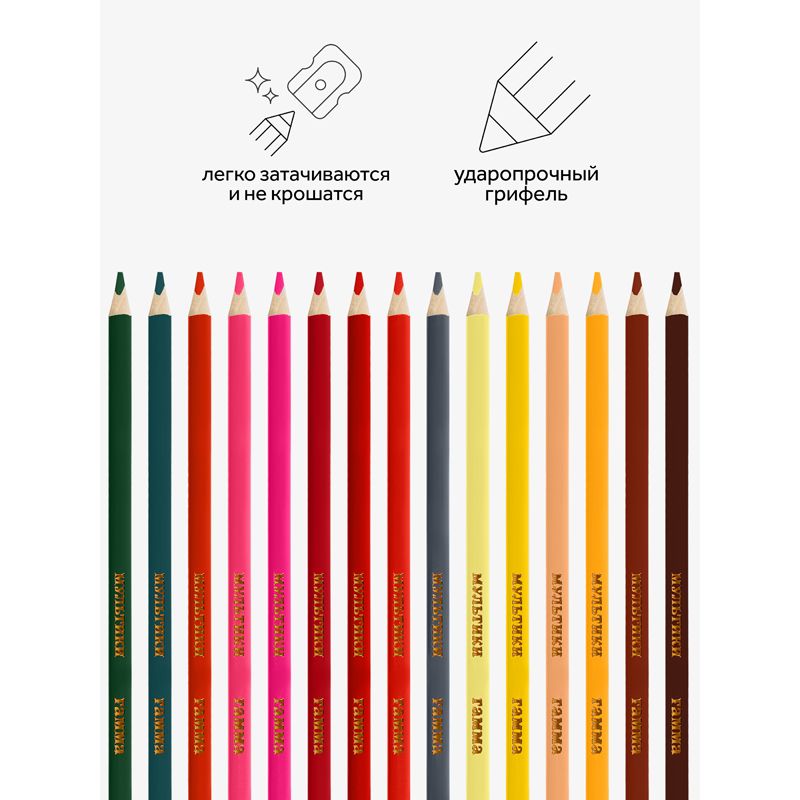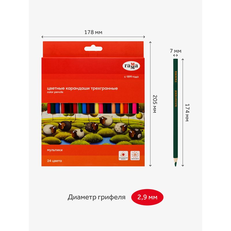 Карандаши цветные Гамма "Мультики", 24цв., трехгранные, заточен., картон. упак., европодвес