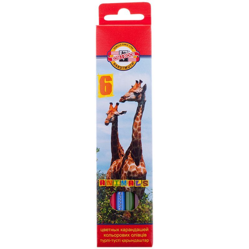 Карандаши цветные Koh-I-Noor "Животные", 06цв., заточен., картон, европодвес
