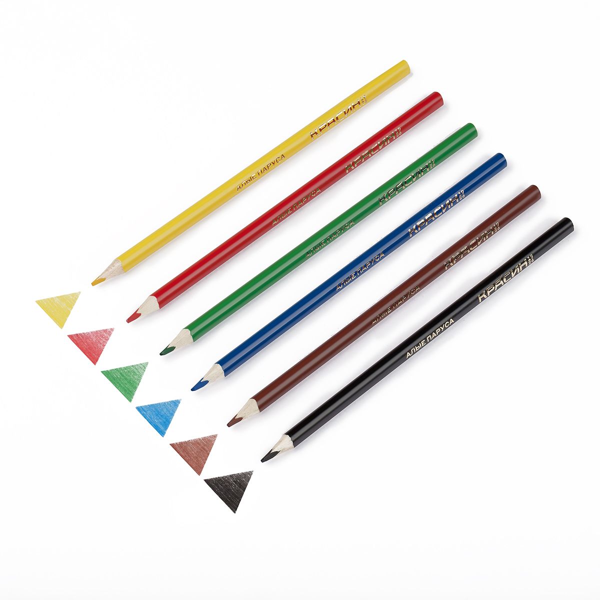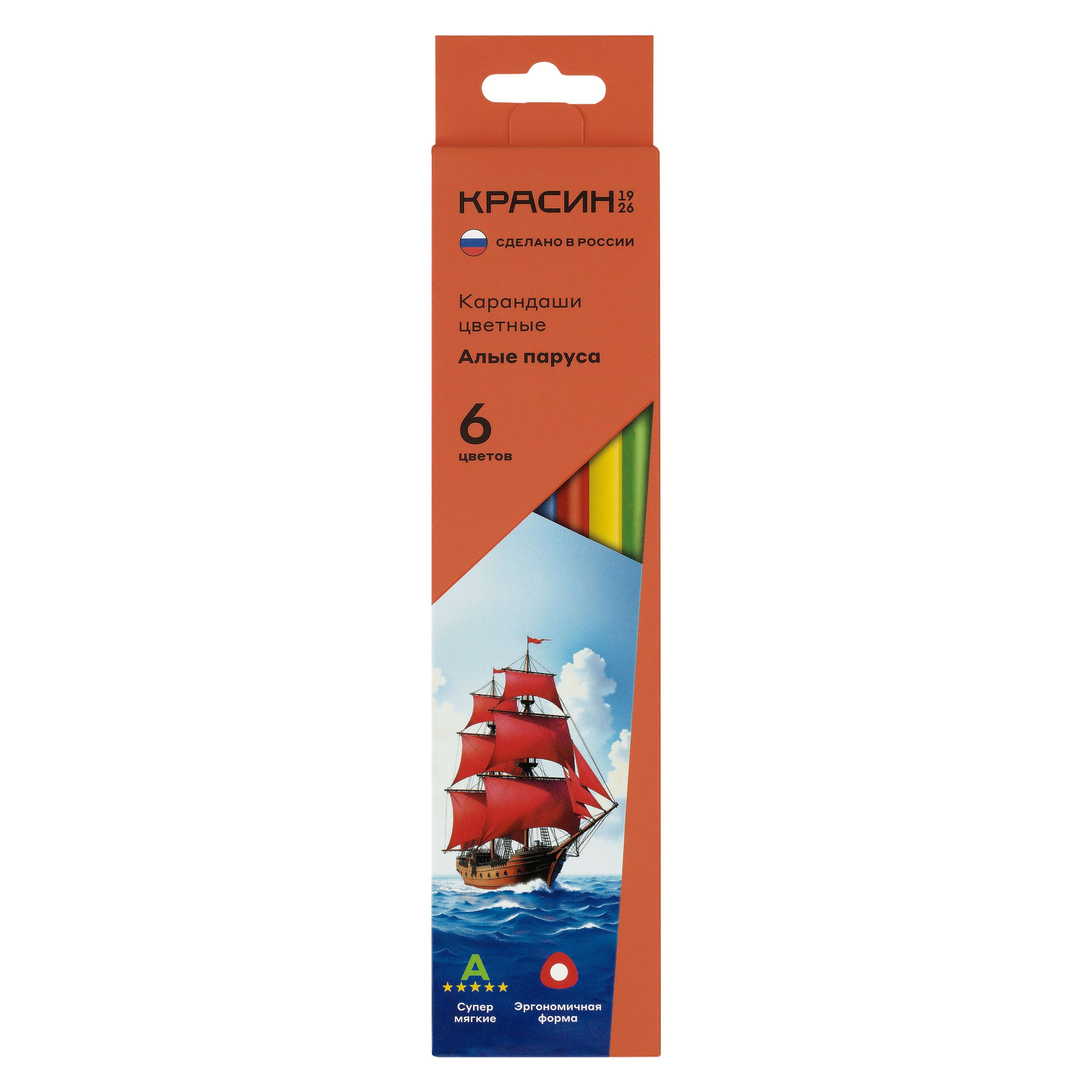 Карандаши цветные Красин "Алые Паруса", 06цв., трехгран., заточен., картон, европодвес