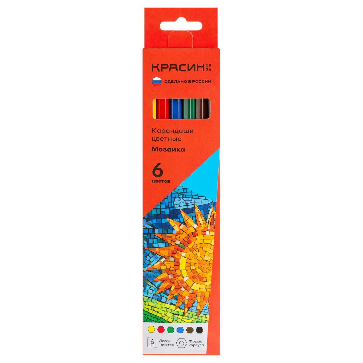 Карандаши цветные Красин "Мозаика", 06цв., шестигран., заточен., картон, европодвес