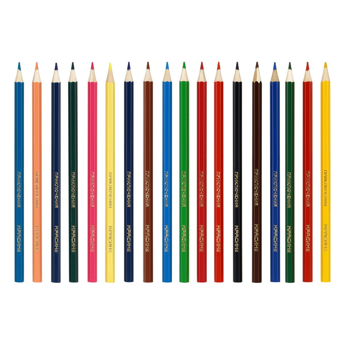 Карандаши цветные Красин "Приключения", 18цв., шестигран., заточен., картон, европодвес