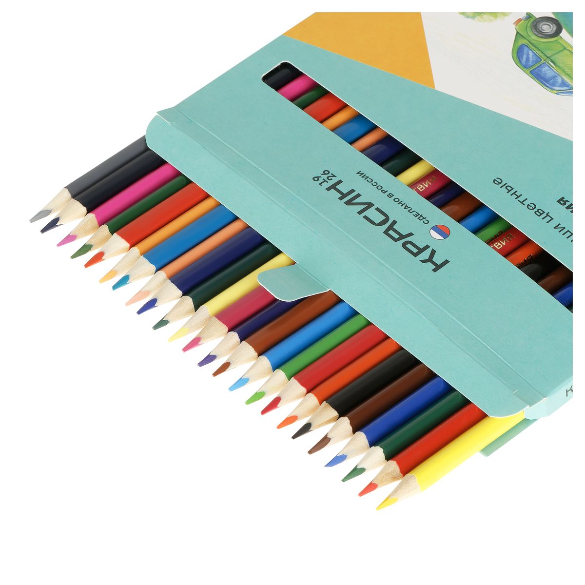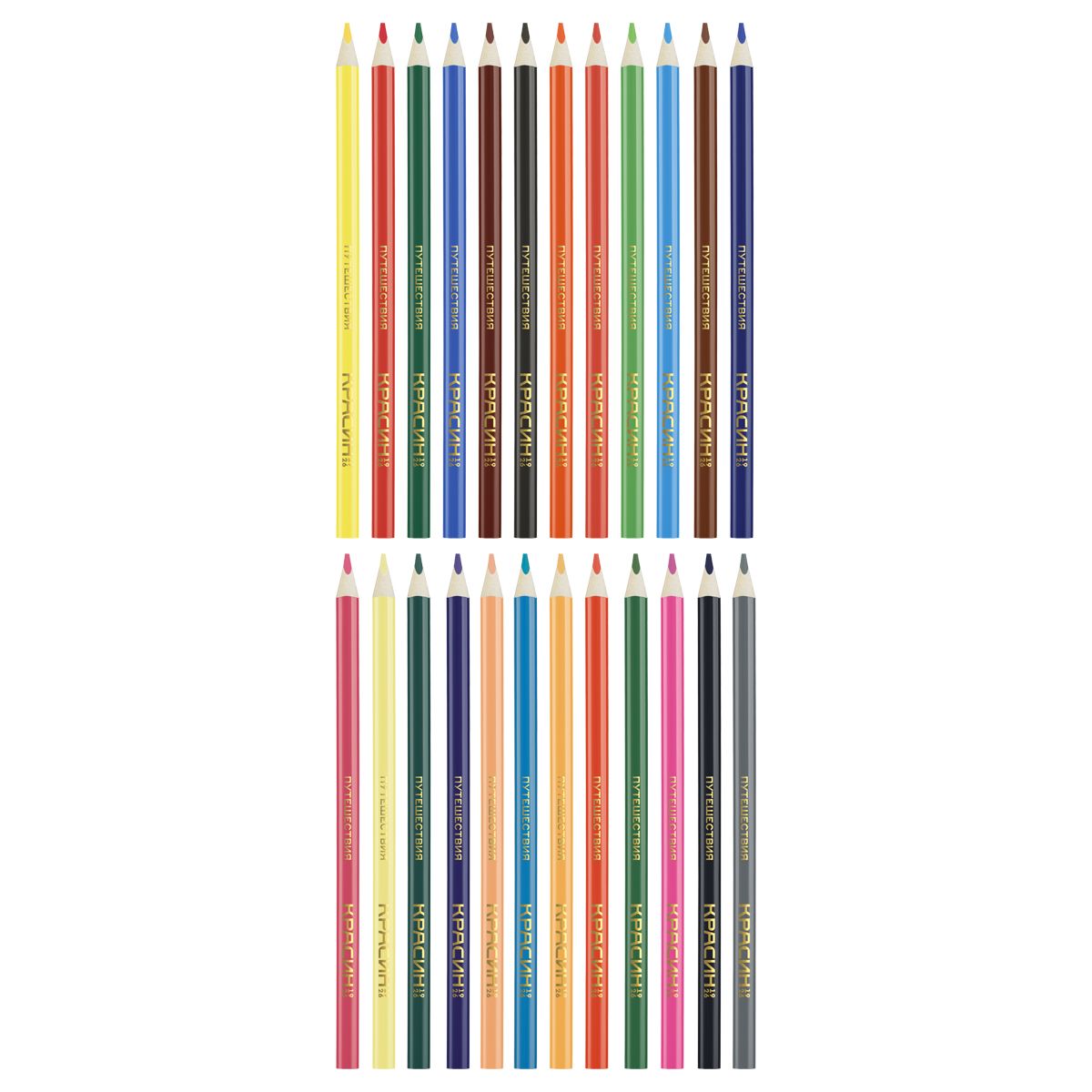 Карандаши цветные Красин "Путешествия", 24цв., трехгран., заточен., картон, европодвес
