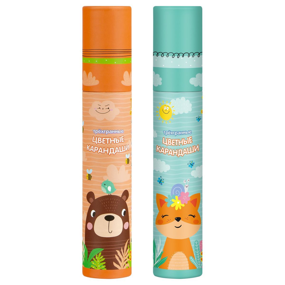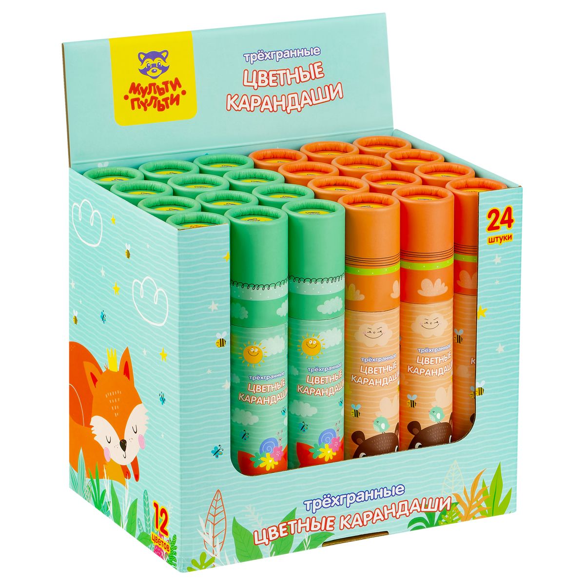 Карандаши цветные Мульти-Пульти "Друзья енота", 12цв., трехгранные, заточен., тубус