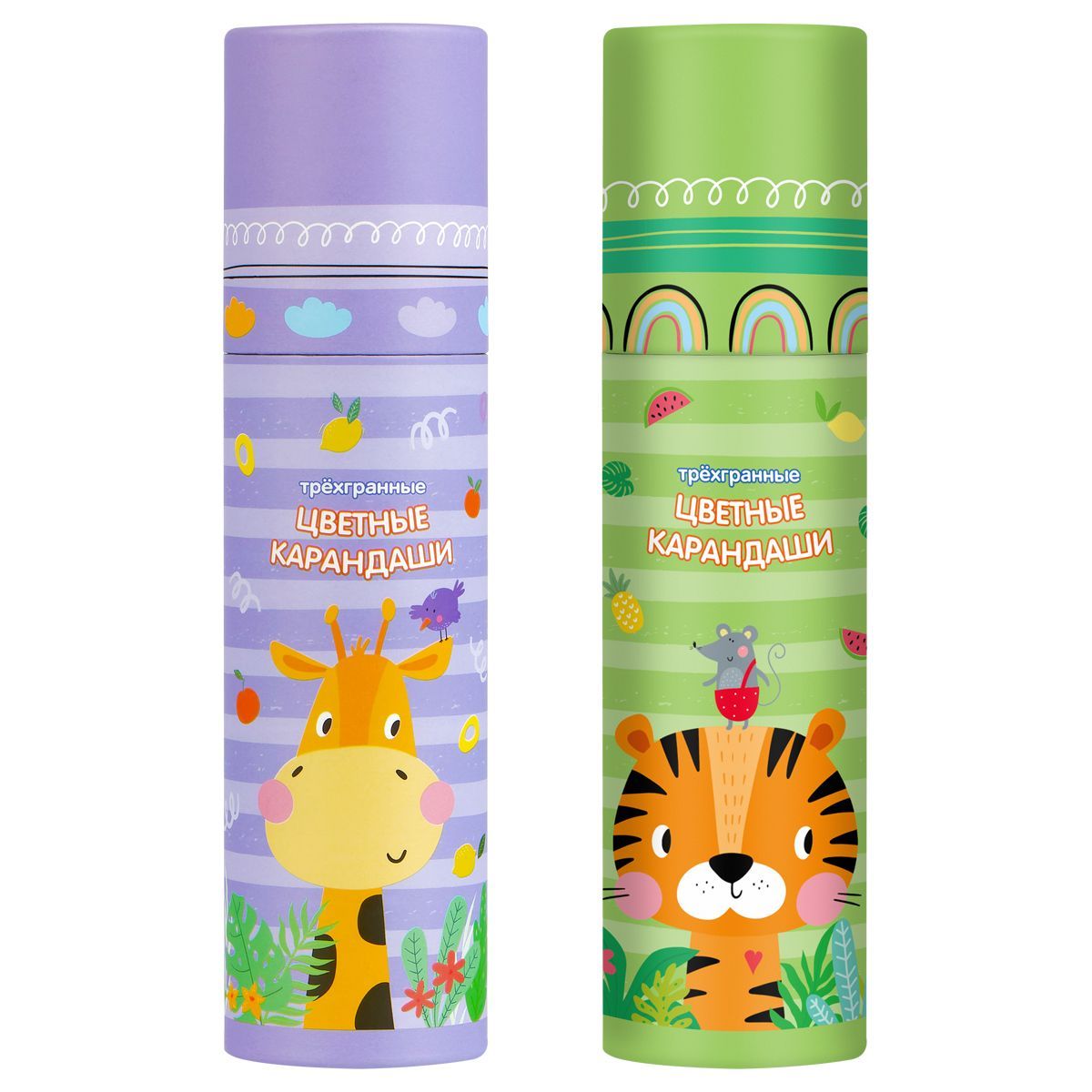 Карандаши цветные Мульти-Пульти "Друзья енота", 24цв., трехгранные, заточен., тубус