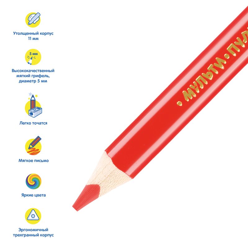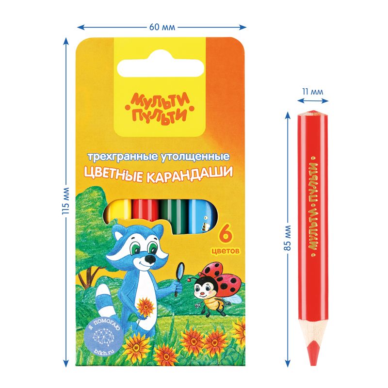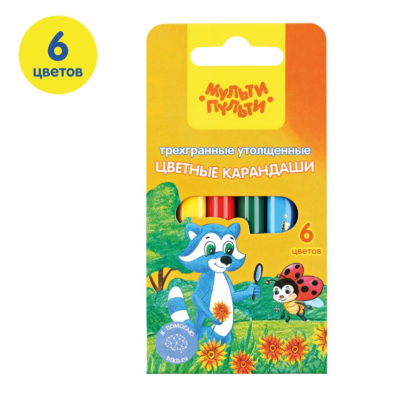 Карандаши цветные Мульти-Пульти "Енот на лугу", 06цв., утолщ., трехгран., укорочен., заточен., картон