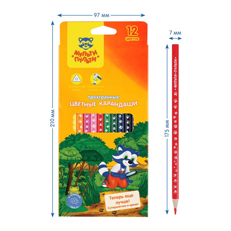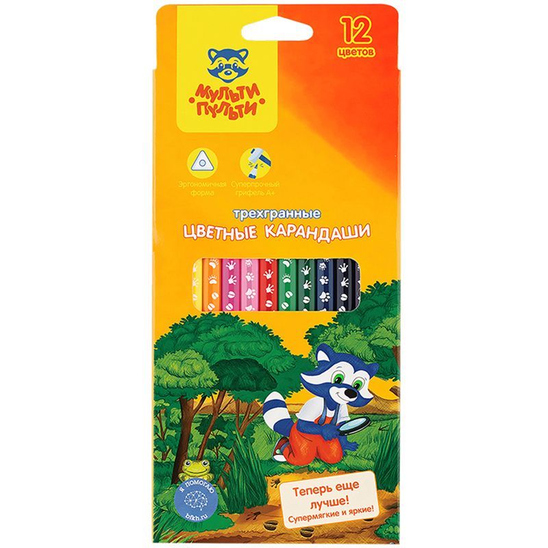 Карандаши цветные Мульти-Пульти "Енот-следопыт", 12цв., трехгр.,рисунок на корпусе, заточен., картон