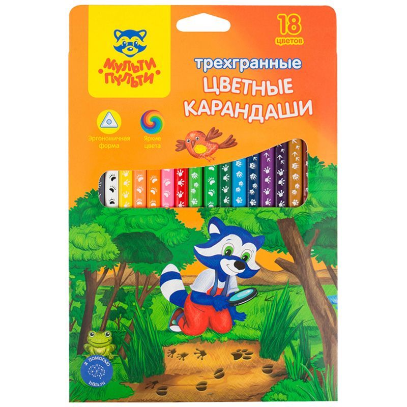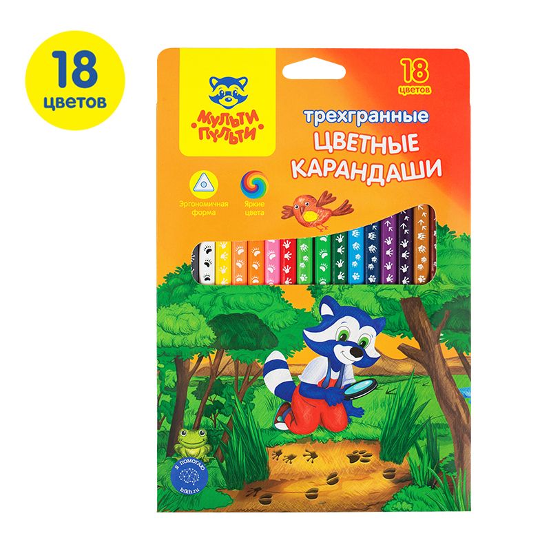 Карандаши цветные Мульти-Пульти "Енот-следопыт", 18цв., трехгр.,рисунок на корпусе, заточен., картон