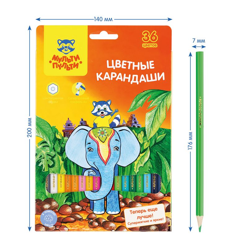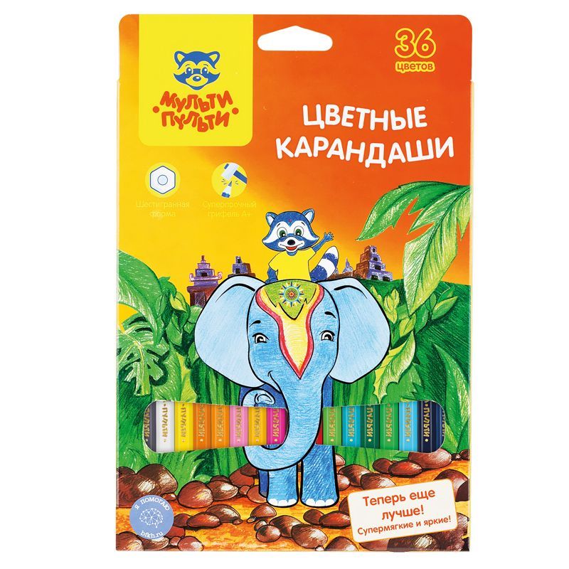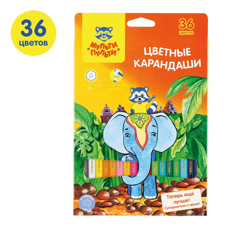 Карандаши цветные Мульти-Пульти "Енот в Индии", 36цв., заточен., картон, европодвес