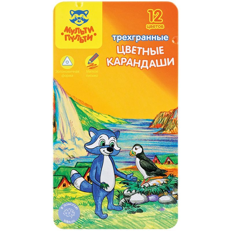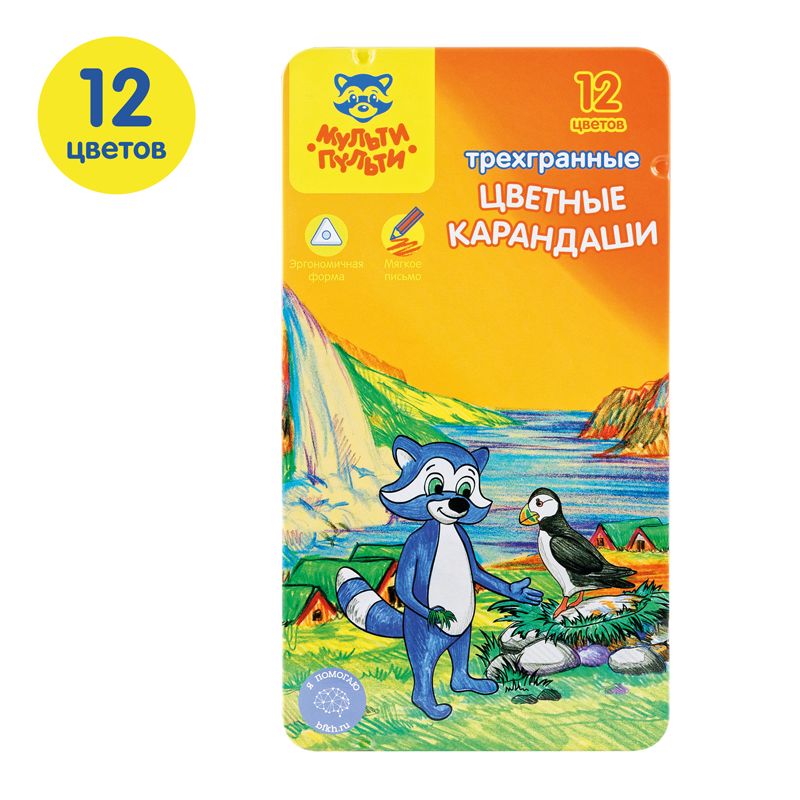 Карандаши цветные Мульти-Пульти "Енот в Исландии", 12цв., трехгран., заточен., метал. пенал