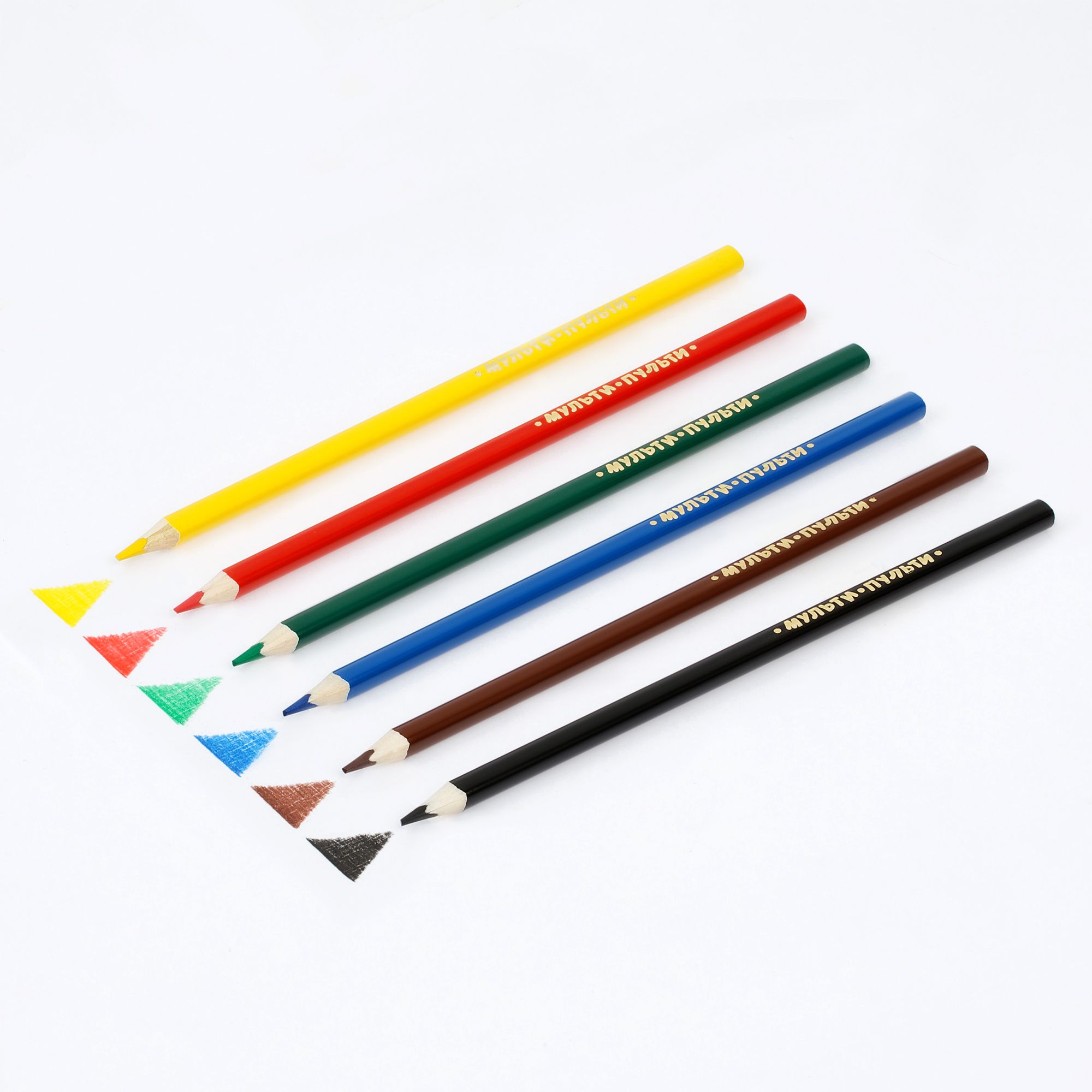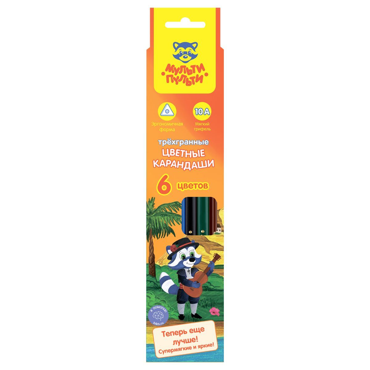 Карандаши цветные Мульти-Пульти "Енот в Испании", 06цв., трехгран., заточен., картон, европодвес