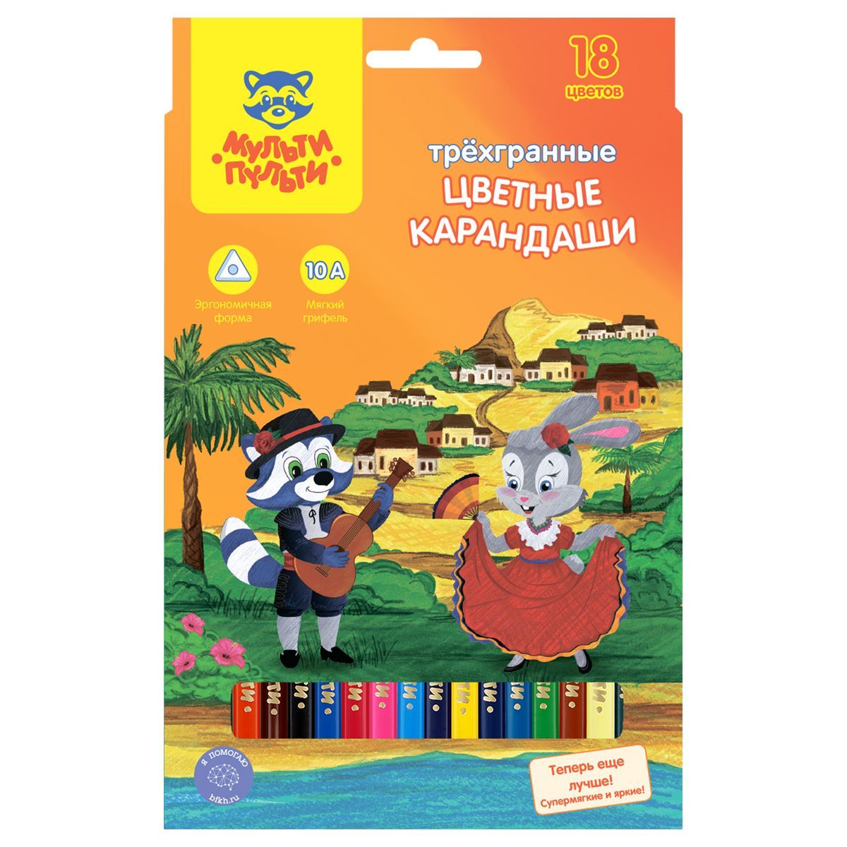 Карандаши цветные Мульти-Пульти "Енот в Испании", 18цв., трехгран., заточен., картон, европодвес