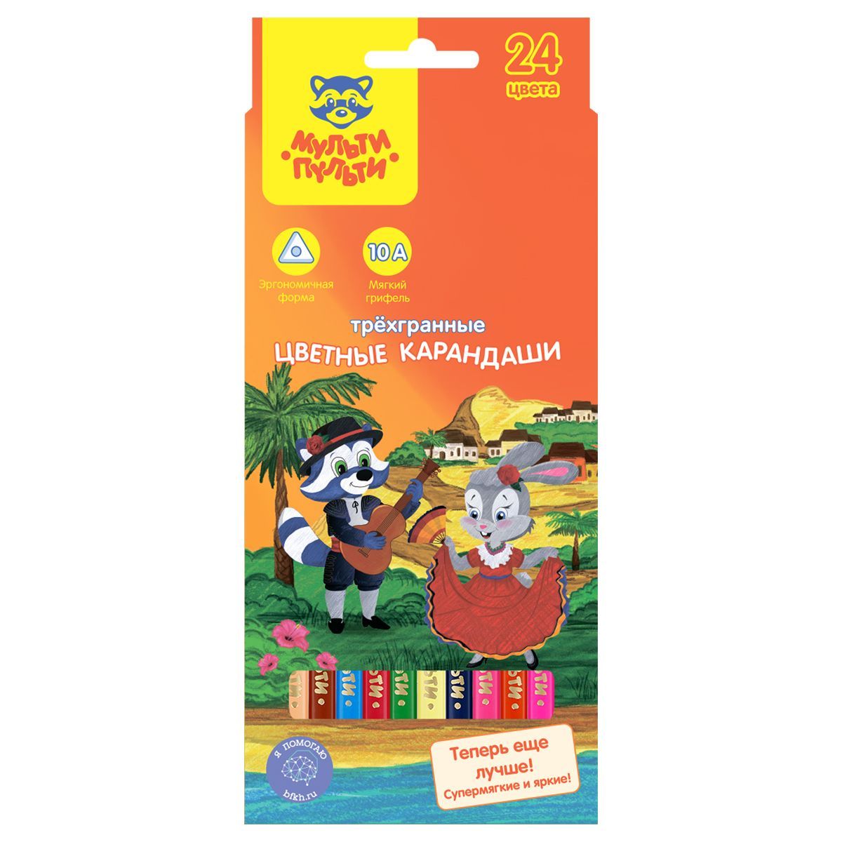 Карандаши цветные Мульти-Пульти "Енот в Испании", 24цв., трехгран., заточен., картон, европодвес