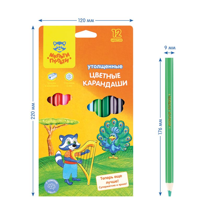 Карандаши цветные Мульти-Пульти "Енот в саванне", 12цв., утолщ., заточен., картон, европ., с точилкой