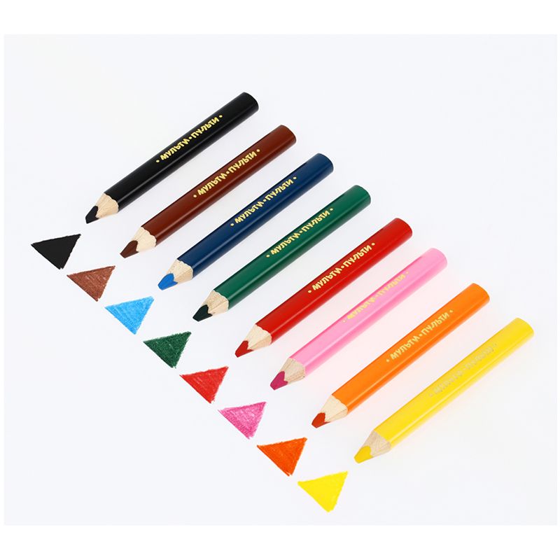 Грифель − сердце карандаша, изготовлен из высококачественных пигментов, поэтому обладает очень мягким письмом и ярким насыщенным цветом, а его диаметр увеличен до 5 мм, чтобы карандашом можно было пользоваться дольше без заточки. Благодаря мягкости грифеля получается яркий и насыщенный цвет при незначительном нажиме, поэтому рука ребенка почти не устает. В набор с карандашами входит точилка с увеличенным диаметром отверстия. Карандаши упакованы в картонную коробку с глянцевой ламинацией и европодвесом.