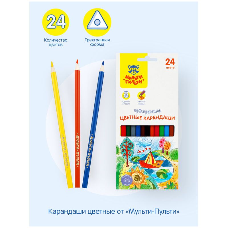 Карандаши цветные Мульти-Пульти "Невероятные приключения", 24цв., трехгран., заточен., картон, европодвес