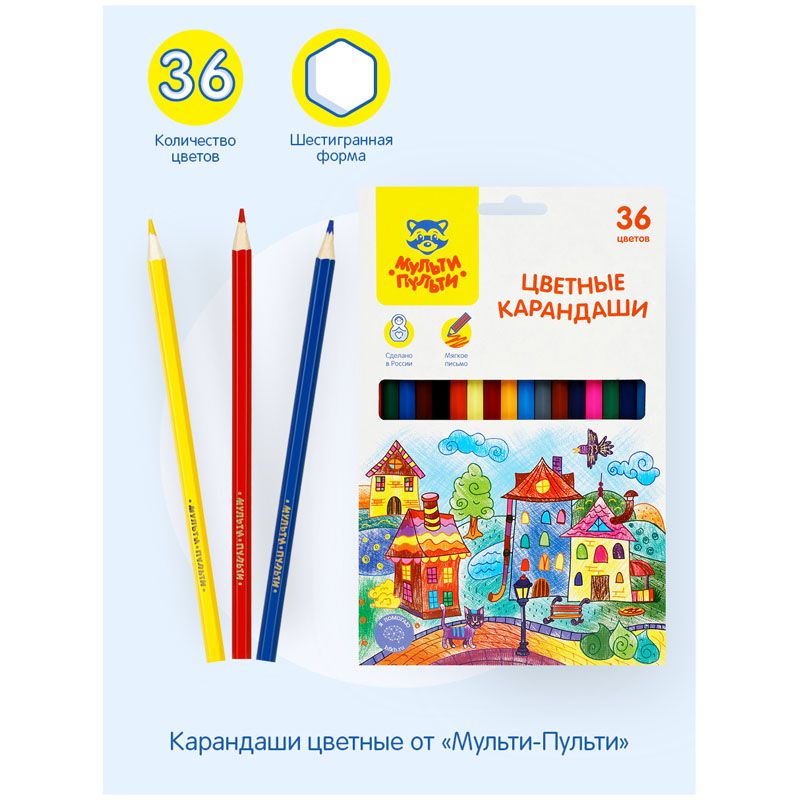 Карандаши цветные Мульти-Пульти "Невероятные приключения", 36цв., заточен., картон, европодвес