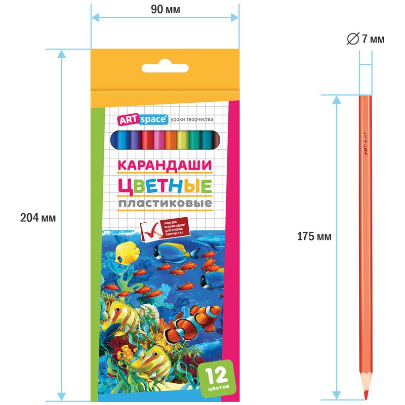 Карандаши цветные пластиковые ArtSpace "Подводный мир", 12цв., заточен., картон, европодвес