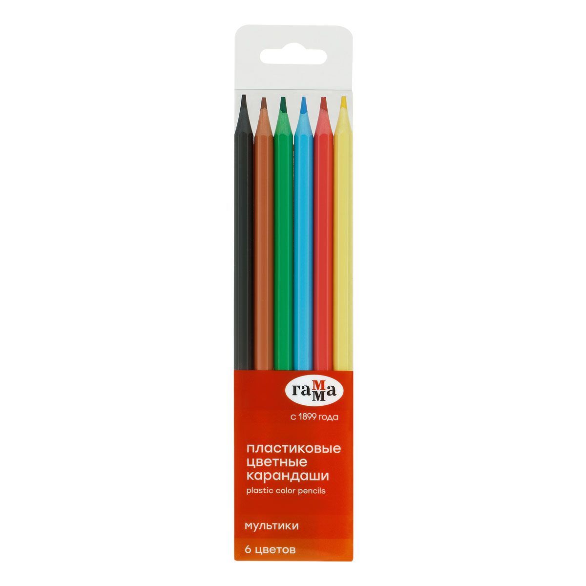 Карандаши цветные пластиковые Гамма "Мультики", 06цв., заточен., ПВХ, европодвес