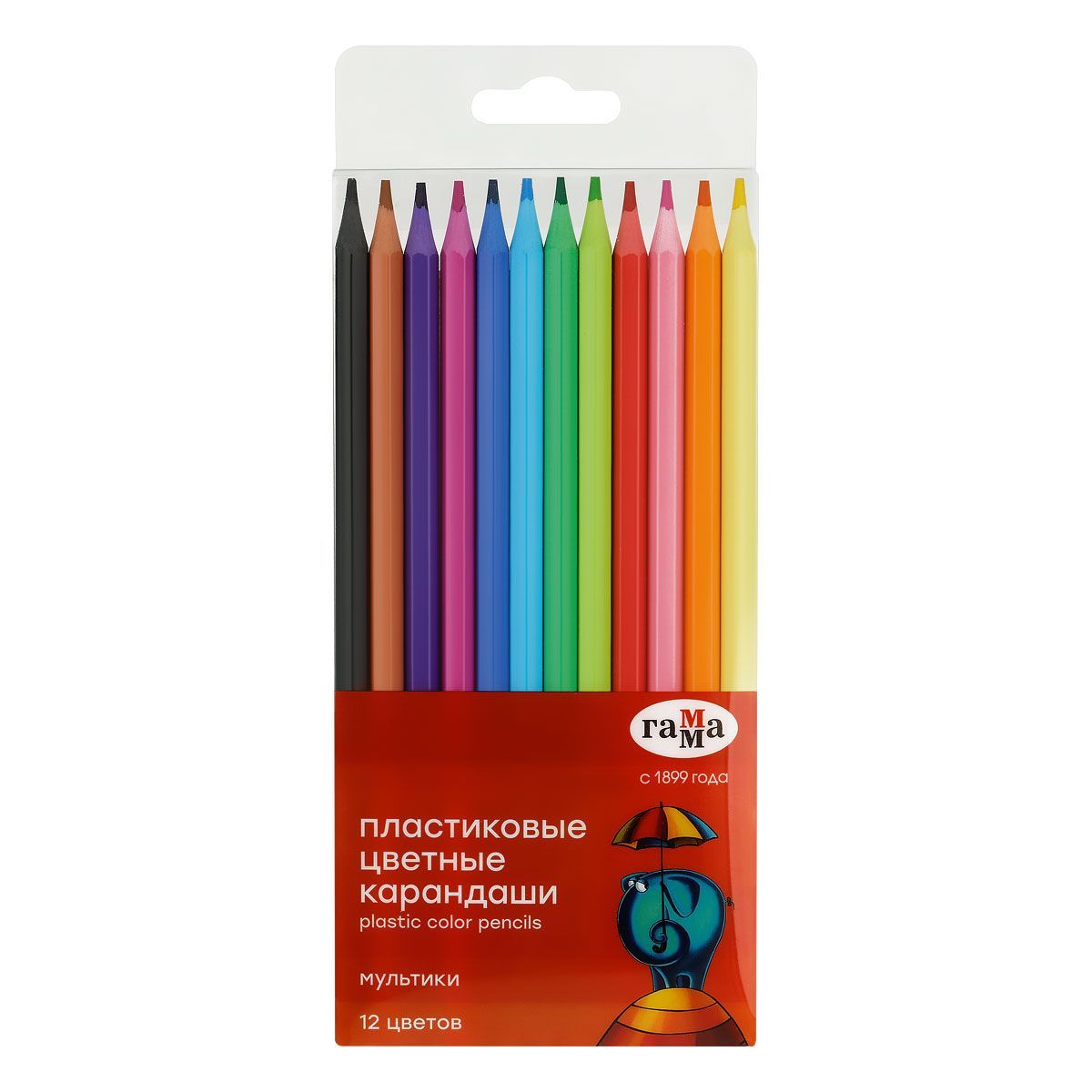 Карандаши цветные пластиковые Гамма "Мультики", 12цв., заточен., ПВХ, европодвес