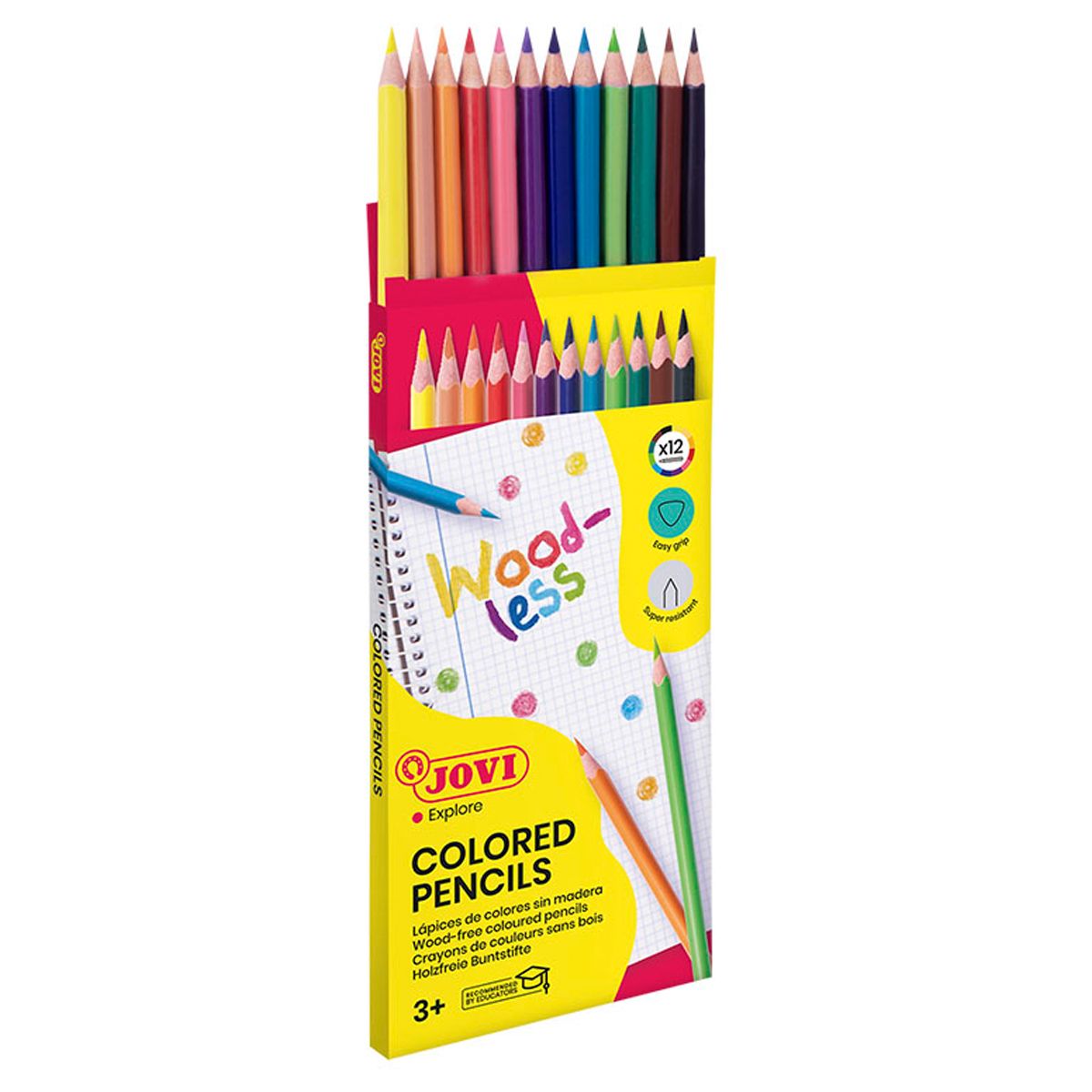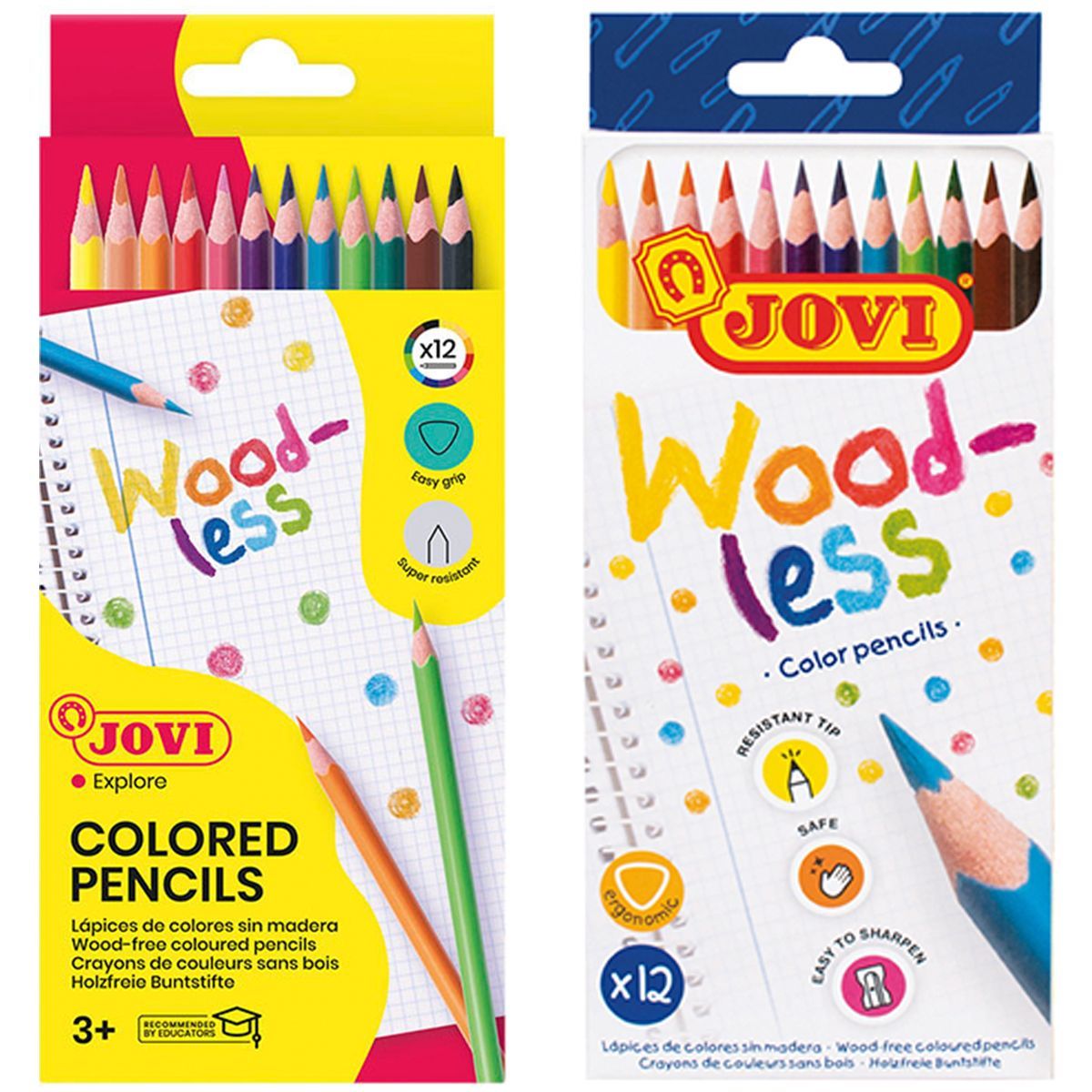 Карандаши цветные пластиковые JOVI "Wood-less", 12цв., трехгран., заточен., картон, европодвес