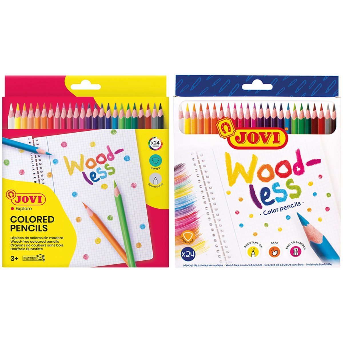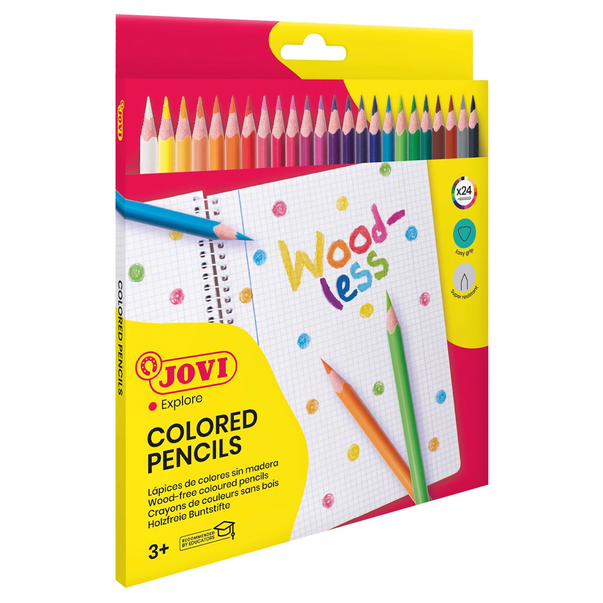 Карандаши цветные пластиковые JOVI "Wood-less", 24цв., трехгран., заточен., картон, европодвес
