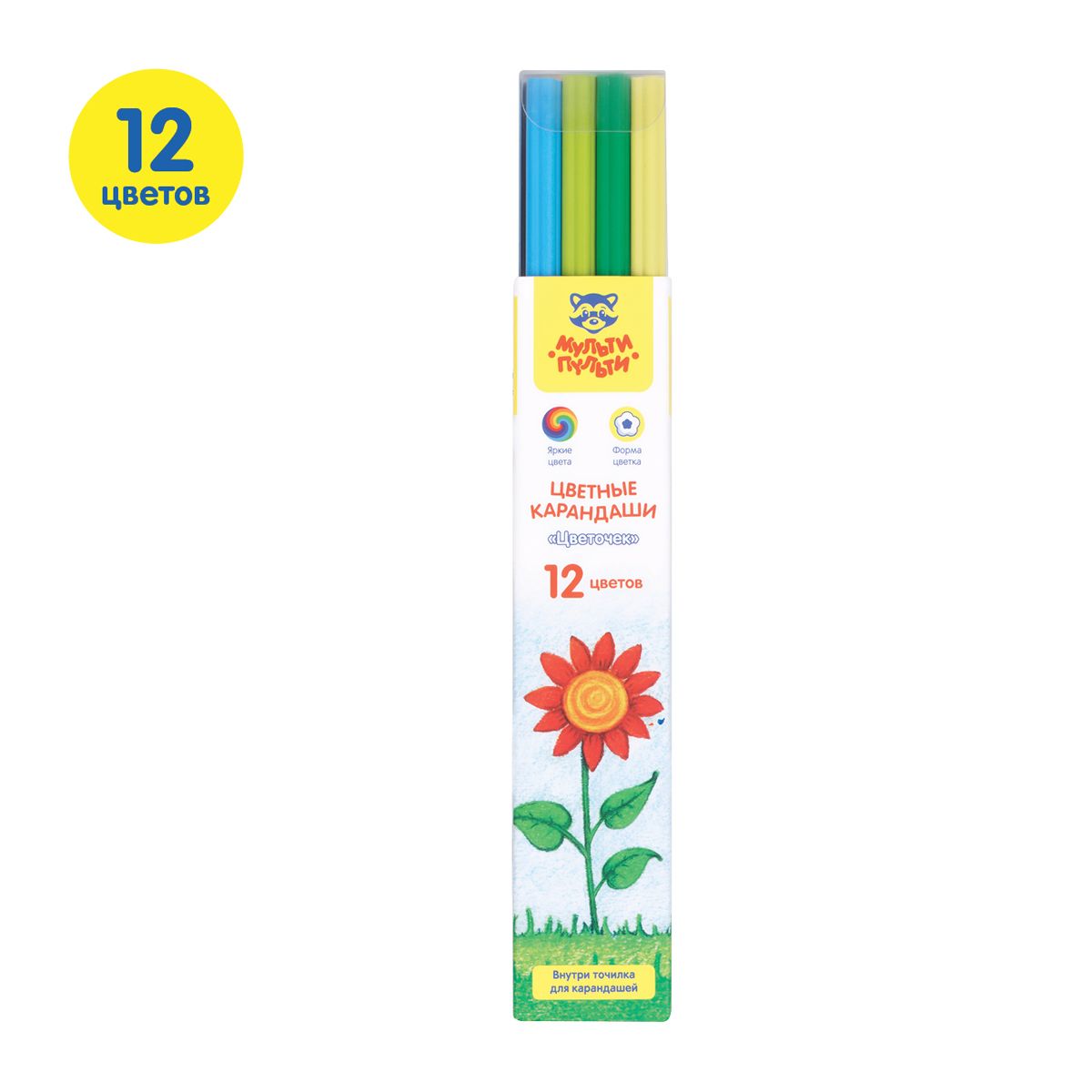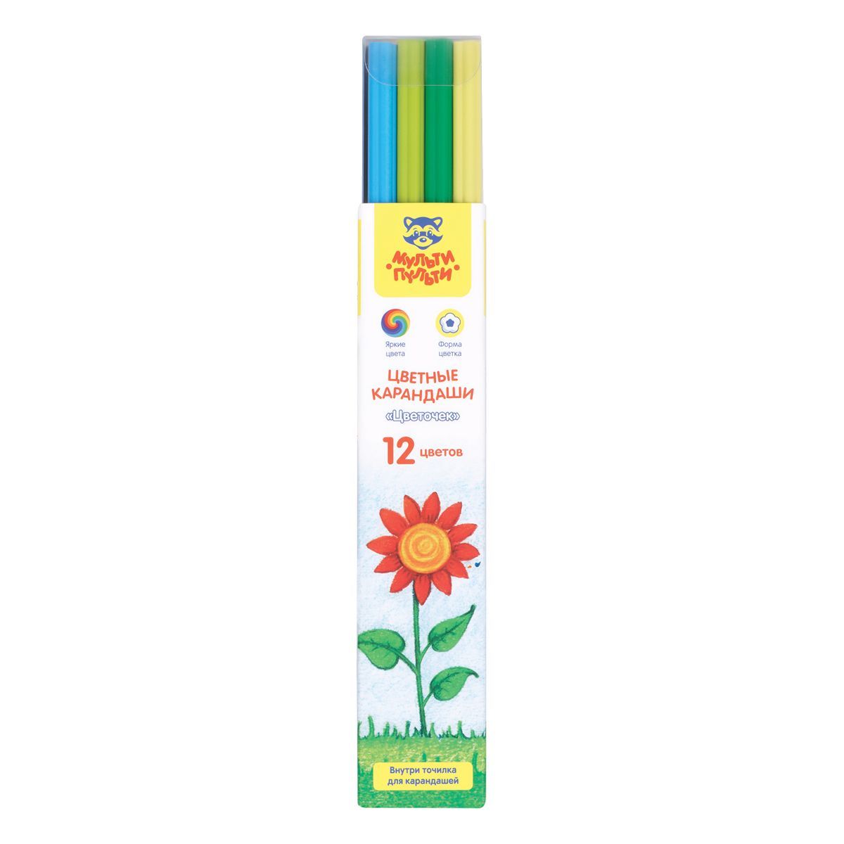 Карандаши цветные пластиковые Мульти-Пульти "Цветочек", 12цв., незаточен., формовой корпус, европодвес