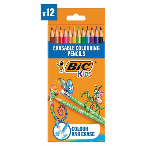 Карандаши цветные стираемые с ластиком BIC "Kids Evolution Illusion", 12 ЦВЕТОВ, европодвес, 987868