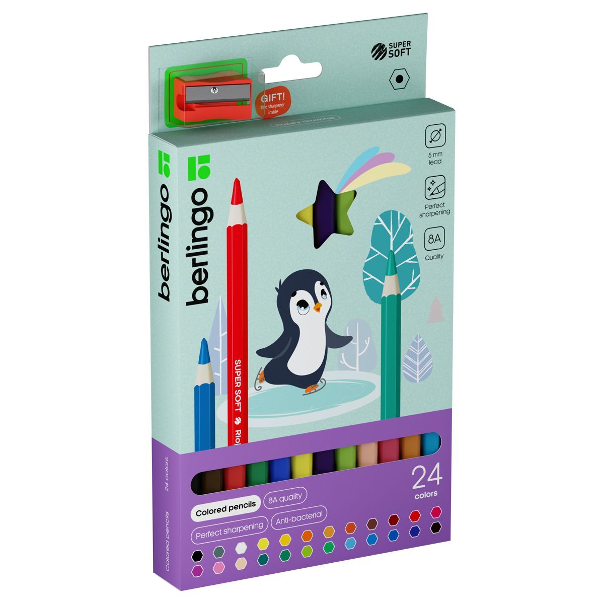 Карандаши цветные утолщенные Berlingo "SuperSoft. Jumbo", 24цв., шестигранные, заточ., европ.