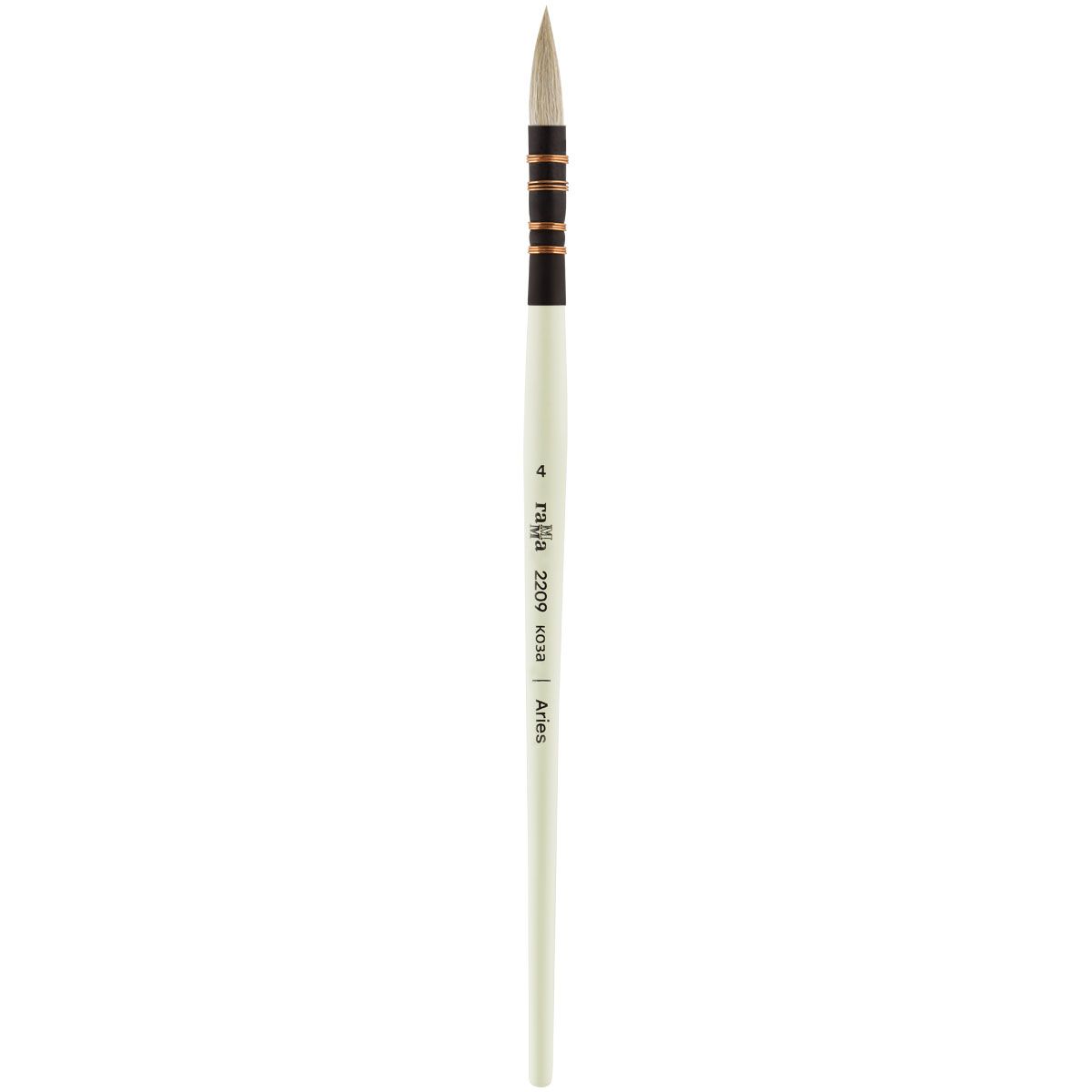 Кисть художественная коза Гамма "Aries", круглая №4, французское крепление, короткая ручка