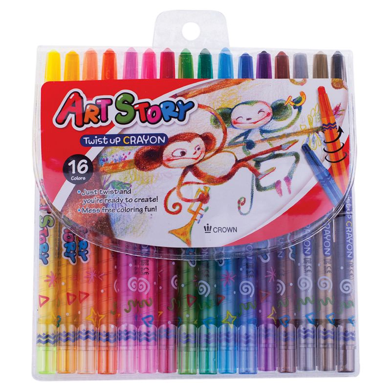 Карандаши восковые Crown "ArtStory", 16цв., выкручивающийся стержень, ПВХ, европодвес