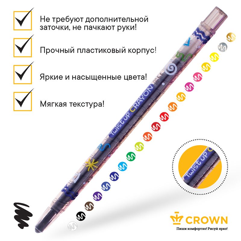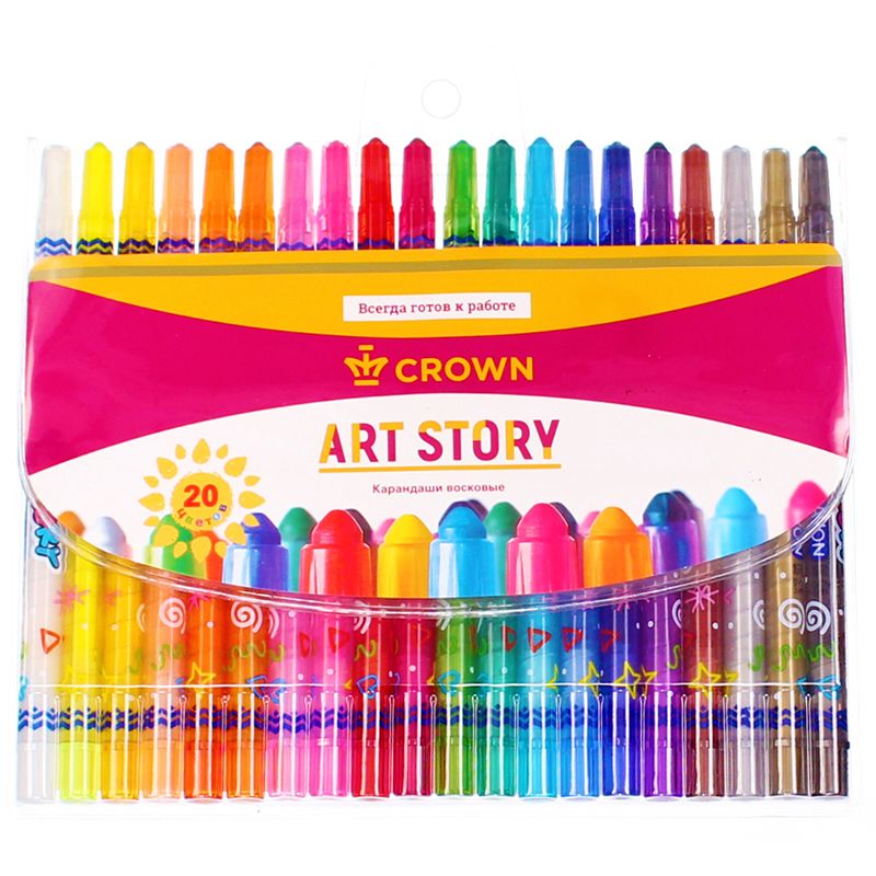Карандаши восковые Crown "ArtStory", 20цв., выкручивающийся стержень, ПВХ, европодвес