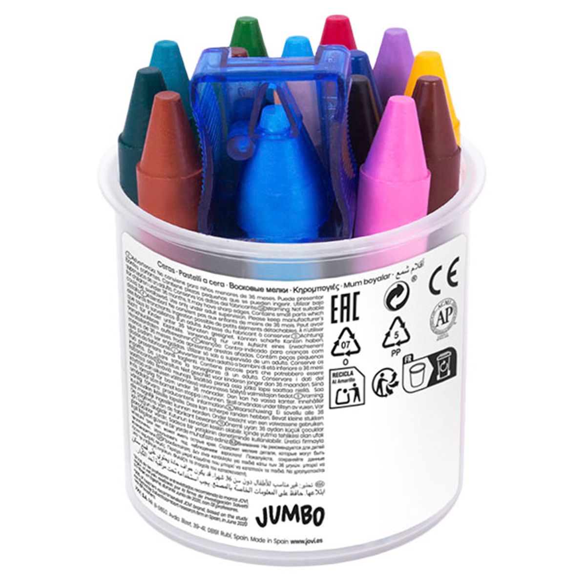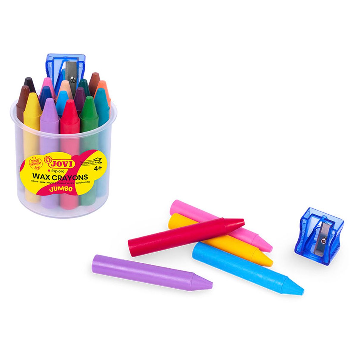 Карандаши восковые JOVI, 16цв., круглые, с точилкой, в стакане