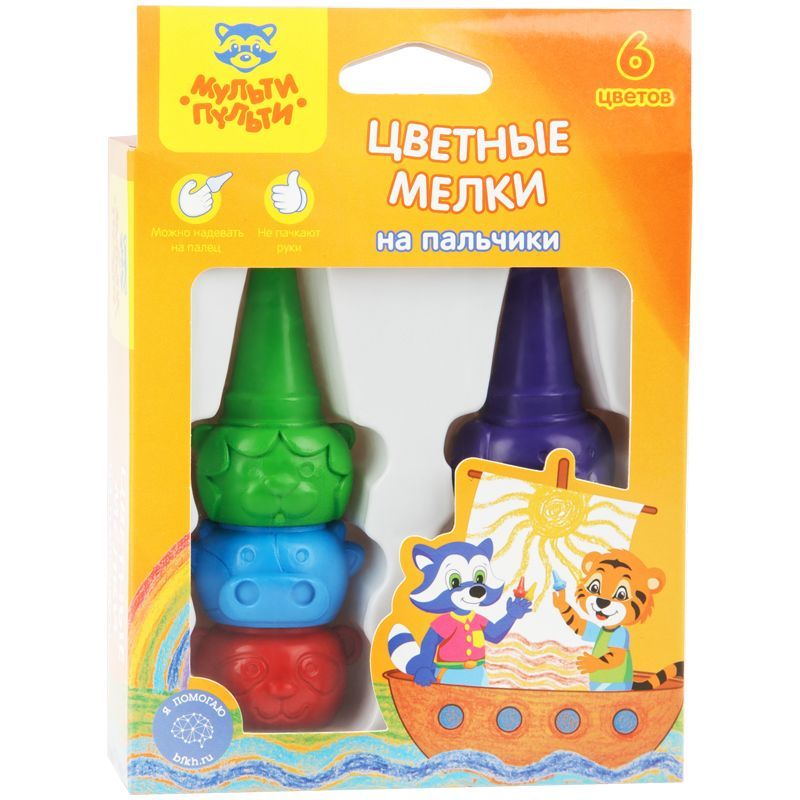 Мелки пластиковые Мульти-Пульти "Зверята", 06цв., на палец, картон