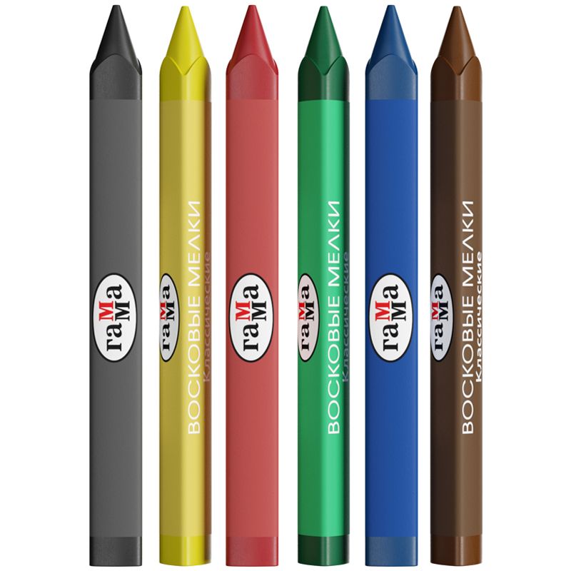 Мелки восковые Гамма "Классические", 06цв., трехгранные, картон. упаковка, европодвес