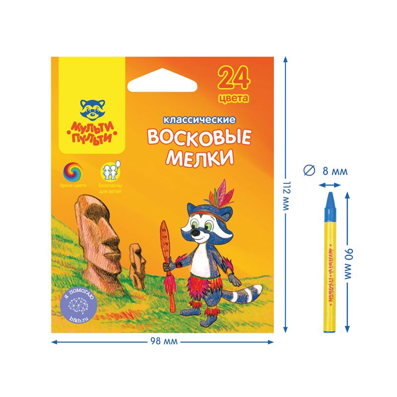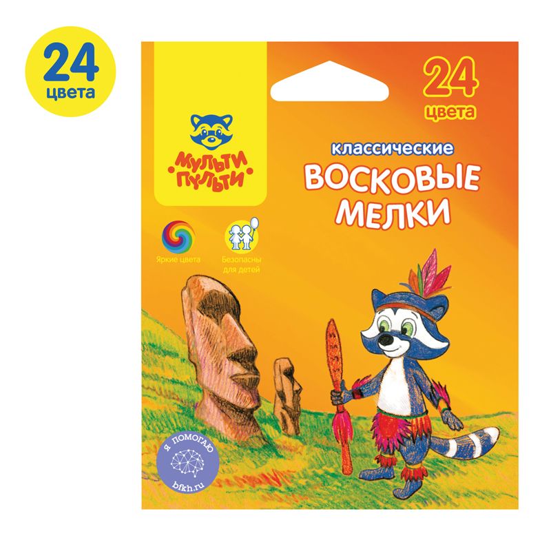 Мелки восковые Мульти-Пульти "Енот на острове Пасхи", 24цв., круглые, картон, европодвес