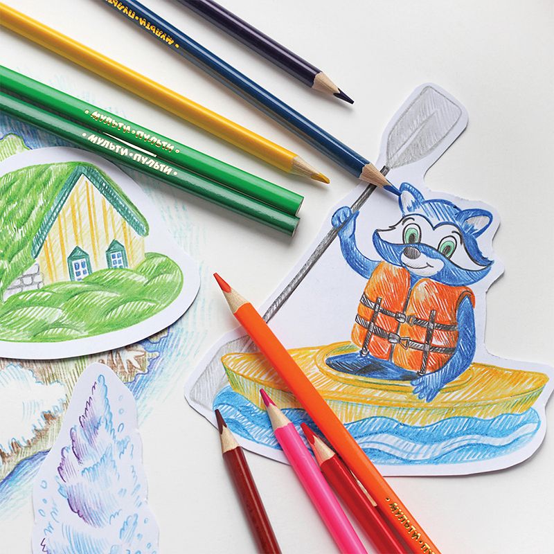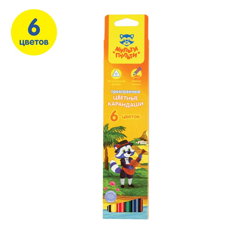 УЦЕНКА - Карандаши цветные Мульти-Пульти "Енот в Испании", 06цв., трехгран., заточен., картон, европодвес