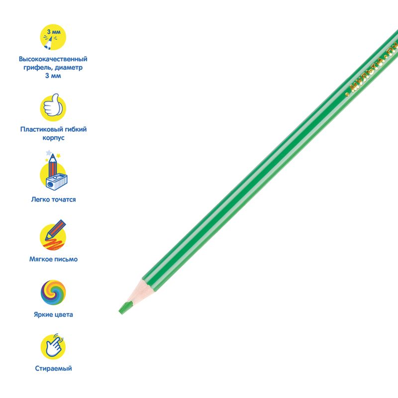 Карандаши цветные пластиковые с заточенным грифелем. Шестигранный корпус. Мягкий яркий грифель диаметром 3мм. Грифель не ломается при падении. Гибкий корпус. Ластик на каждом карандаше. Яркие насыщенные цвета. Штрихи мягко ложатся на бумагу. Карандаши легко затачиваются. Упакованы в картонную коробку с европодвесом. Цвета в наборе: красный, оранжевый, желтый, розовый, фуксия, темно-фиолетовый, фиолетовый, светло-фиолетовый, темно-синий, синий, голубой, сепия, коричневый, зеленый, изумрудный, ярко-зеленый, черный, серый.