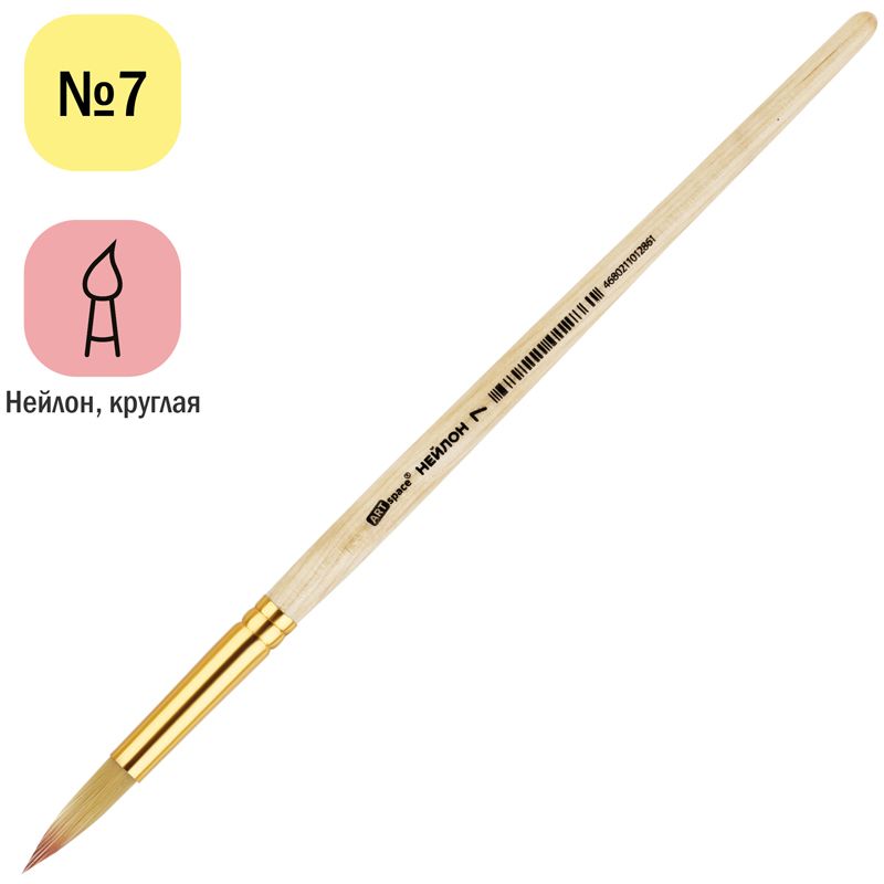 Кисть нейлон, ArtSpace, круглая №07, пакет, европодвес