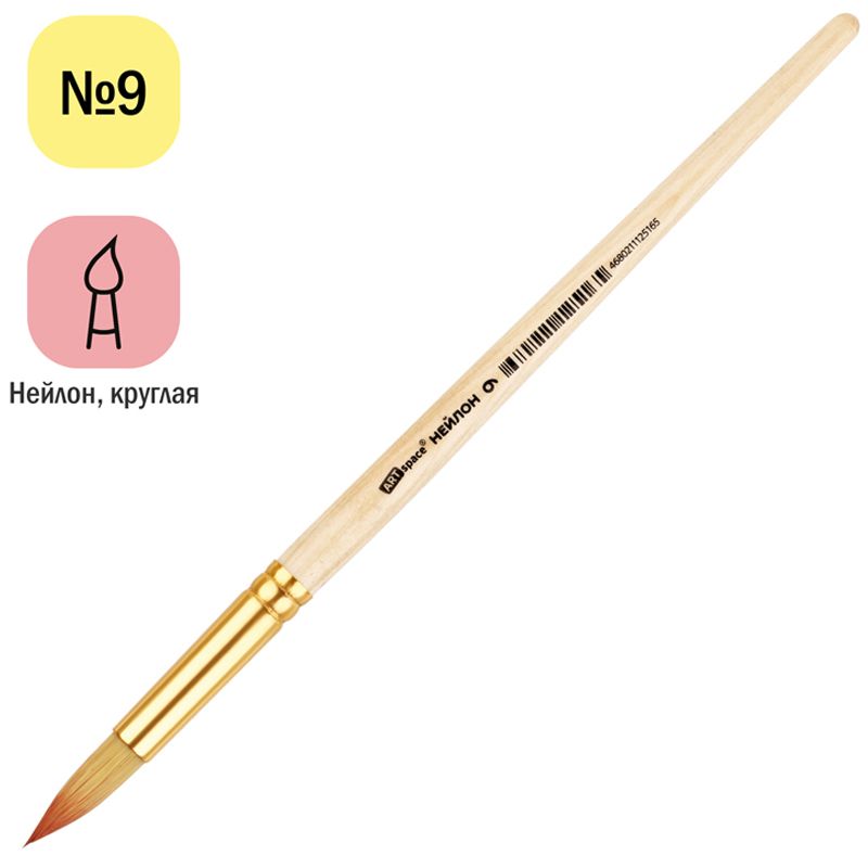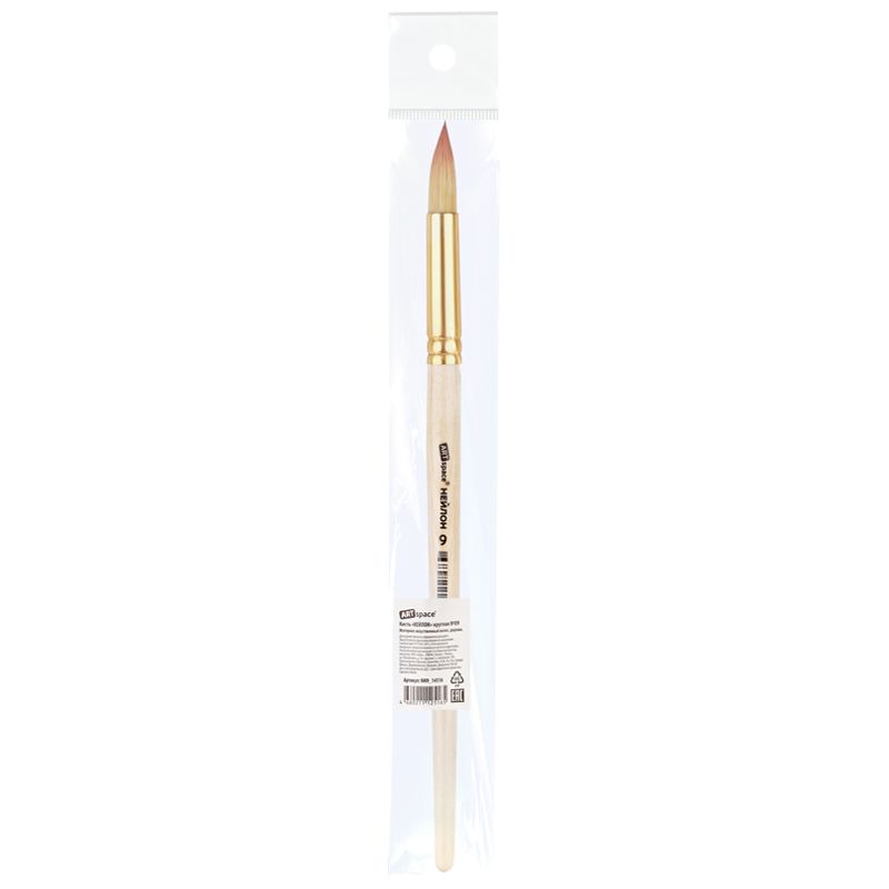 Кисть нейлон, ArtSpace, круглая №09, пакет, европодвес
