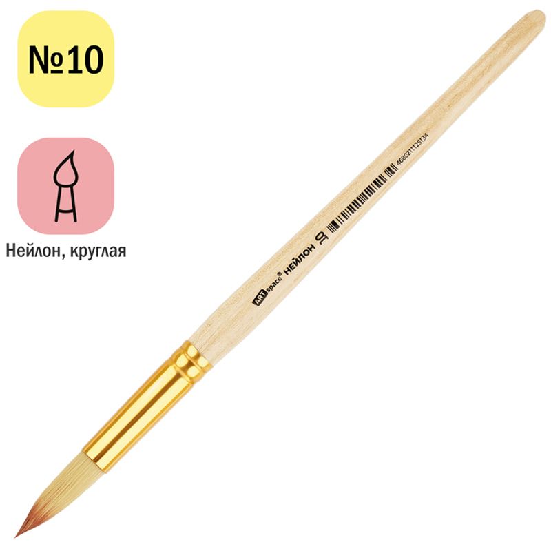 Кисть нейлон, ArtSpace, круглая №10, пакет, европодвес