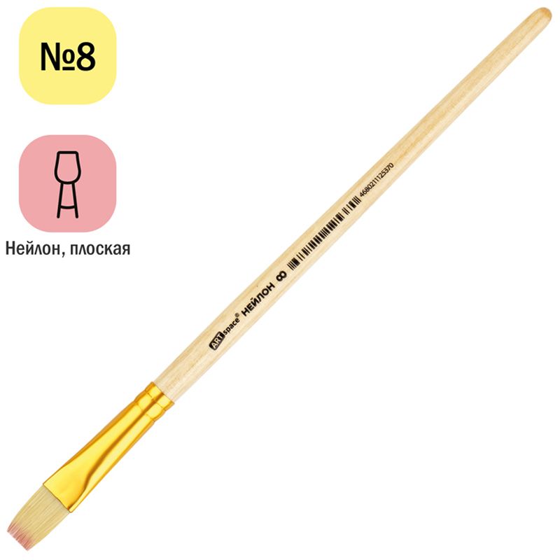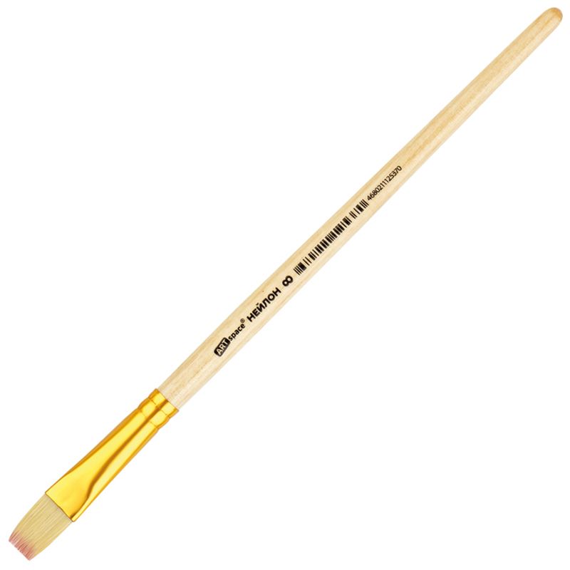 Кисть нейлон, ArtSpace, плоская №08, пакет, европодвес