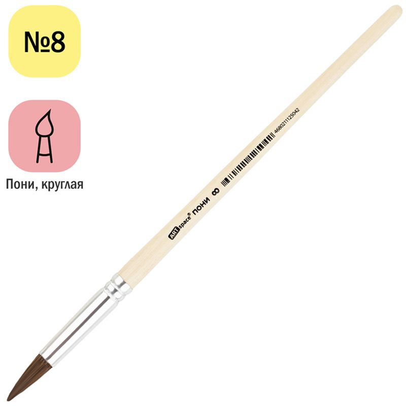 Кисть пони, ArtSpace, круглая №08, пакет, европодвес