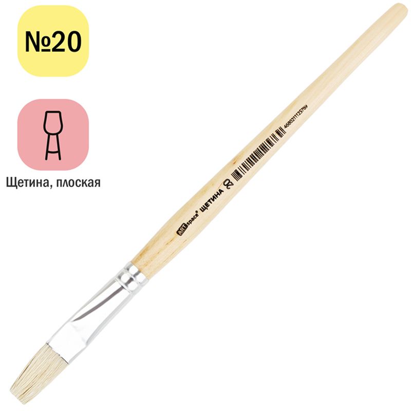 Кисть щетина, ArtSpace, плоская №20, пакет, европодвес
