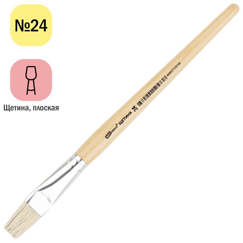 Кисть щетина, ArtSpace, плоская №24, пакет, европодвес
